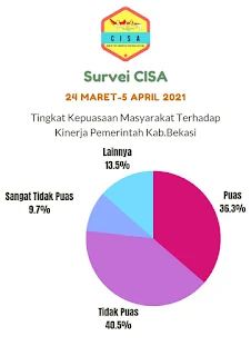 Vnn.co.id, Kabupaten Bekasi - Hasil Survei Centre for Indonesia Strategic Actions (CISA) tentang Persepsi Masyarakat Terhadap Kinerja Pemerintah Kabupaten Bekasi, Selasa (6/4/2021).